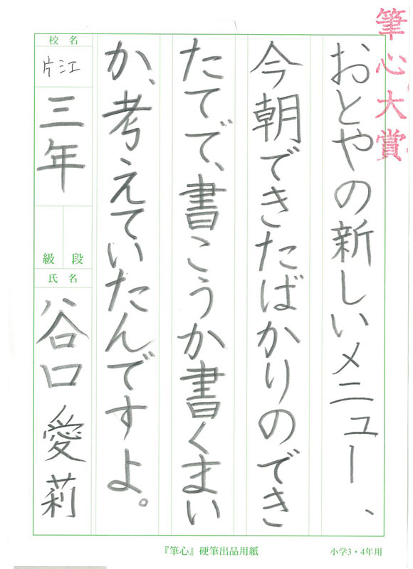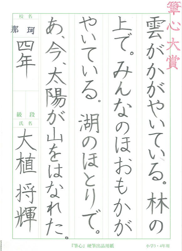 線に勢いがあり形も整っていて、とても上手に書けました。